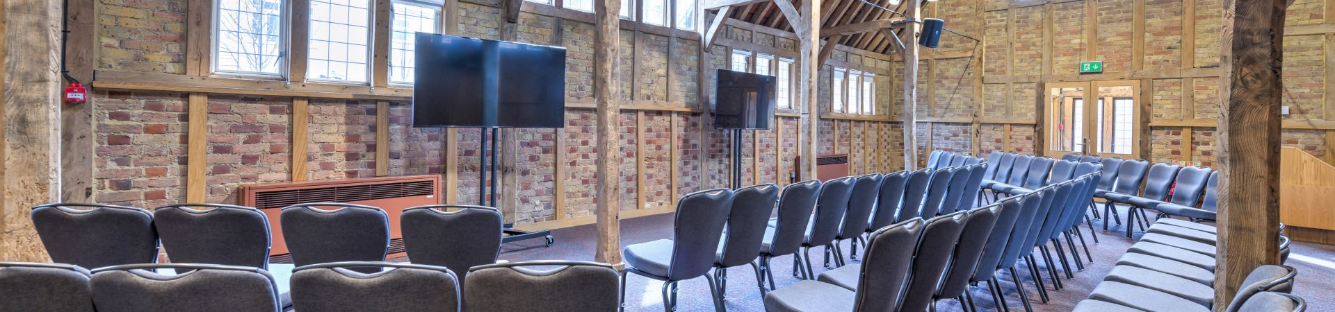 The barn is equipped with two mobile LED screens with DVD/Blu-ray inputs. There is also a lectern, radio microphones, mixing desk and a Yamaha piano. Chapel Barn also has catering facilities if required.