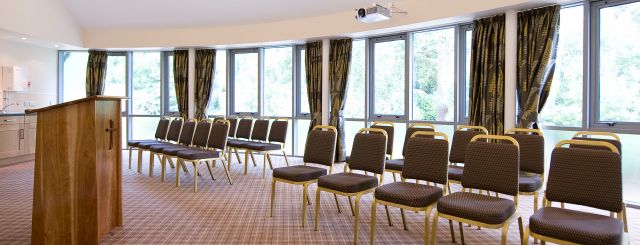 Cherry Room has an expansive curved window which helps to give it a bright and modern feel. The room can seat up to 40 people theatre style.