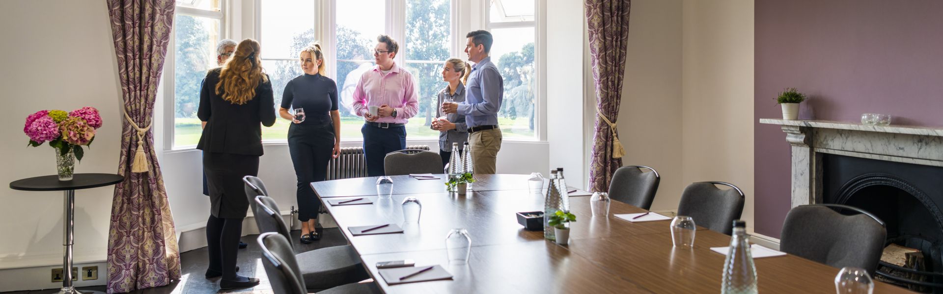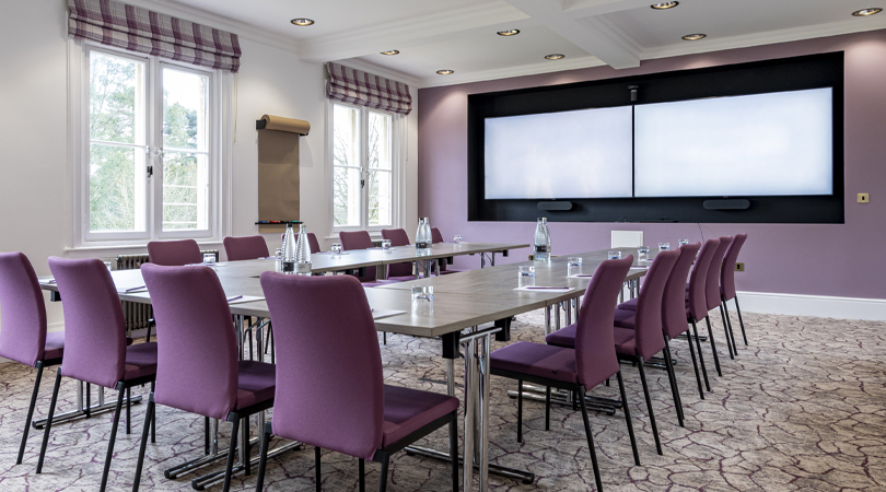 Our brand new, luxurious meeting rooms that overlook the manor house gardens are elegantly decorated with period features and equipped with the latest technology. Your presentations will be crystal clear on our large screens and your delegates will be immersed in high-quality surround sound. All meeting rooms are equipped with superfast Wi-Fi, video conferencing facilities, stationery and a selection of water.