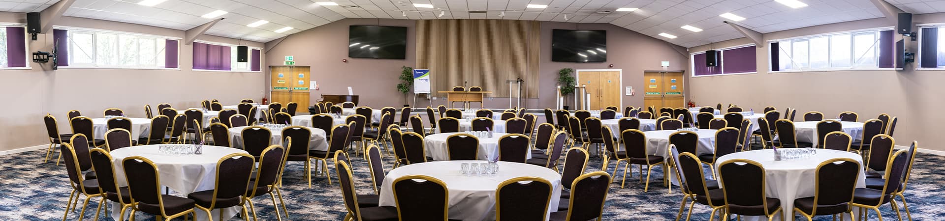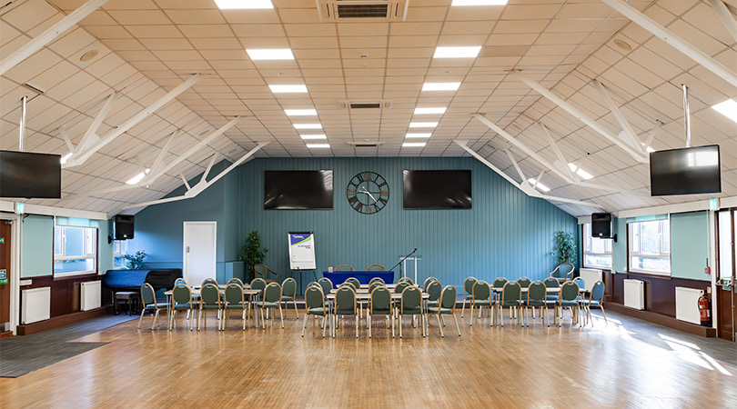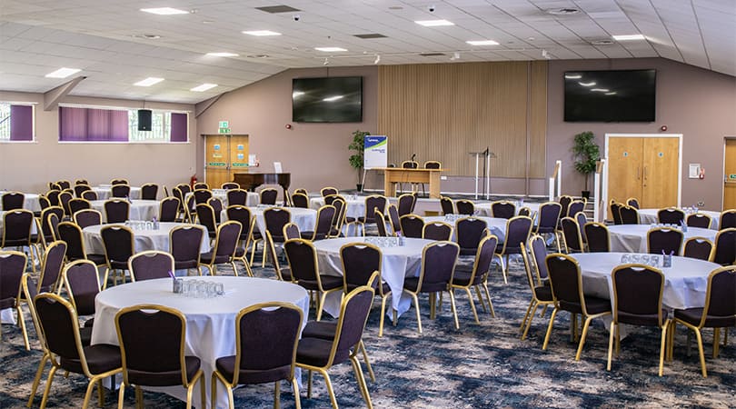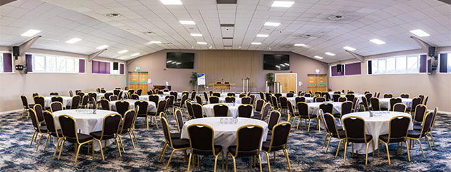 This is our largest hall which can seat up to 400 people theatre style. It is part of our Derbyshire Suite which includes 9 smaller meeting rooms and a sports hall.
